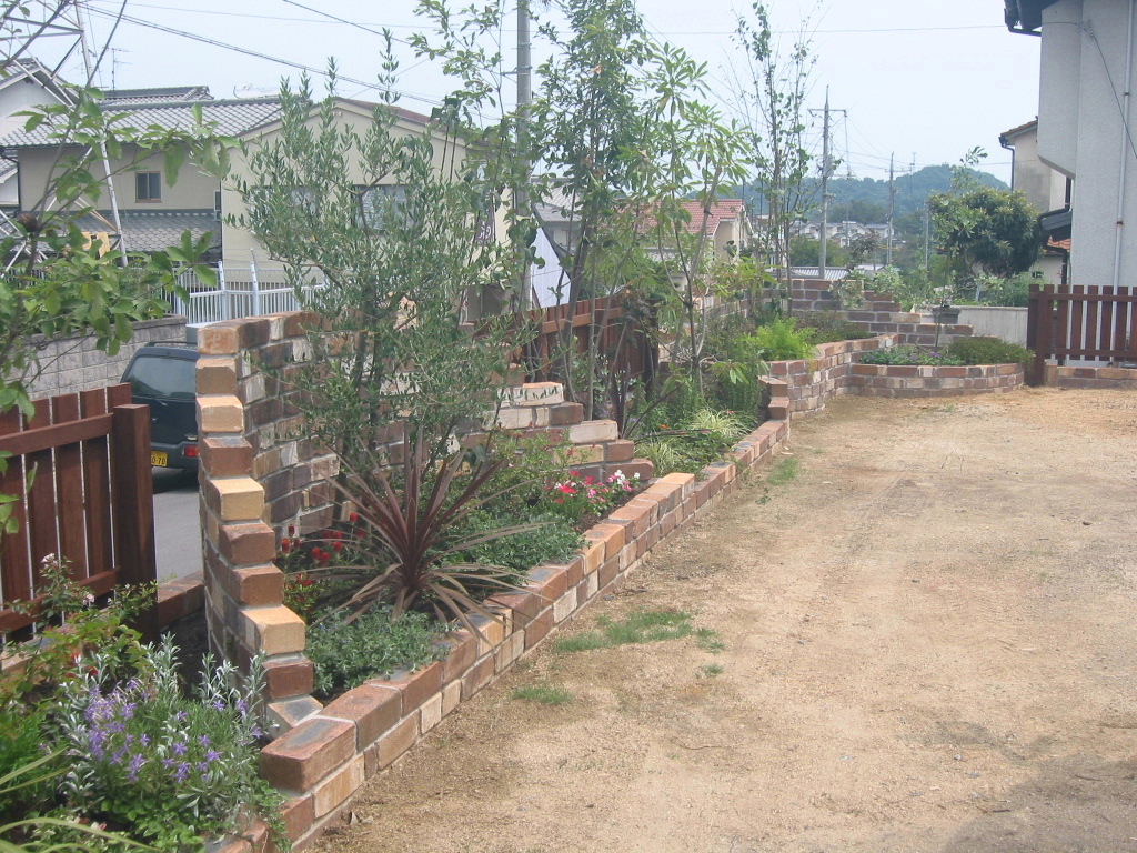 施工内容 レンガ塀の内側は、花だんになっています。 |